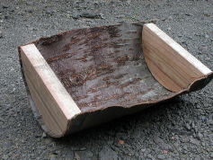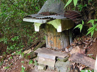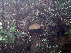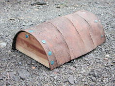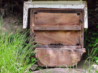 日本みつばちは、巣箱の下に開けた小さな穴から出入りをします。採蜜は、毎年、7月に行います。 |