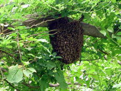 ほうきで掃いていってもミツバチたちは蜜を吸うのに一生懸命で刺しに来たりはしません。 |